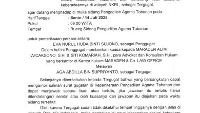 Panggilan Pertama Perkara Ghoib Nomor 39/Pdt.G/2025/PA.Tbanan