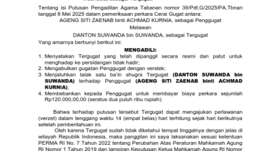 Pemberitahuan Putusan Perkara Nomor 39/Pdt.G/2025/PA.Tbnan